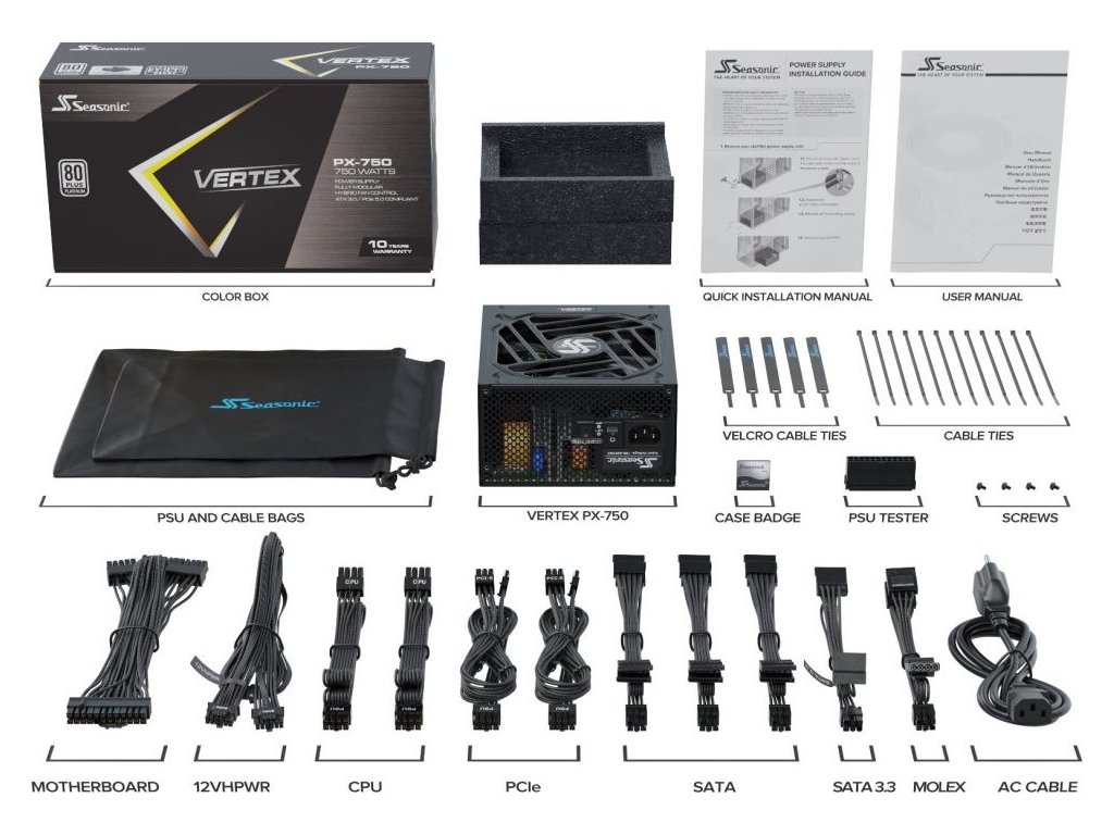 Seasonic VERTEX PX-750 Platinum 750 WNapájecí zdroj o výkonu 750 W je osazen tichým a přitom výkonným 135mm ventilátorem. Zdroj splňuje certifikaci 80PLUS Platinum, standard ATX 3.0 a má plně odpojitelné kabely.