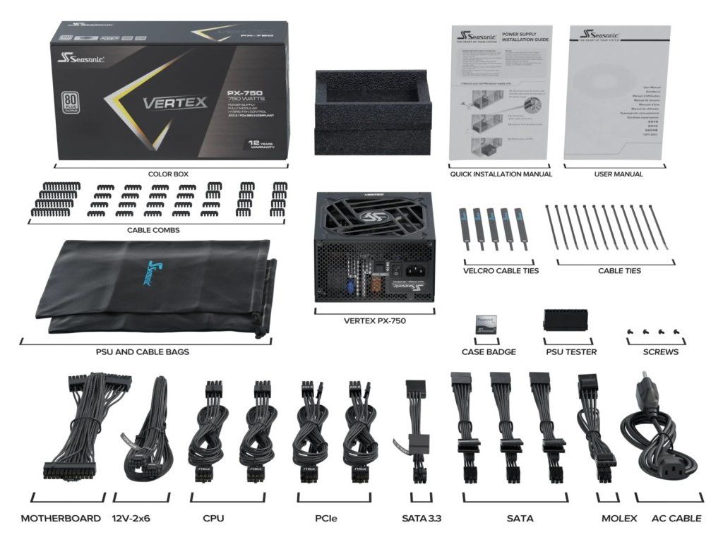 Napájecí zdroj Seasonic VERTEX PX-750 Platinum je ideální volbou pro herní sestavy, tvůrčí a multimediální stanice nebo PC systémy, které dělají radost všem náročným uživatelům. Výkon 750 W představuje ideální balanc mezi výkonem, který nabízí dostatek síly pro náročné sestavy, ale současně nespotřebovává zbytečné watty navíc. Zdroj Seasonic VERTEX PX-750 Platinum se uplatní v herních sestavách, které jsou vybaveny high-endovými grafikami RTX nebo špičkovými procesory. V rámci pracovních stanic zvládne náročné procesy jako střih videa, renderování nebo 3D modelování.