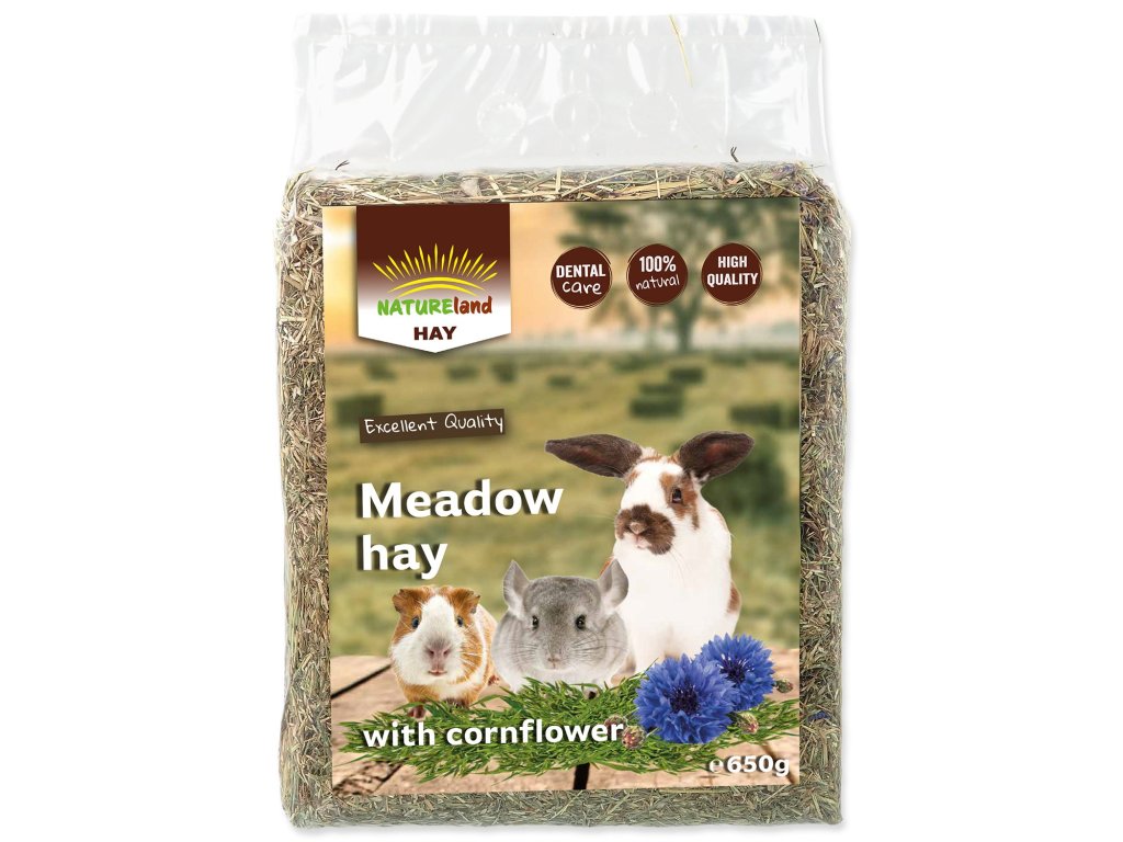 Složení: Seno z horských luk 96 %, sušené květy chrpy 4 %?.