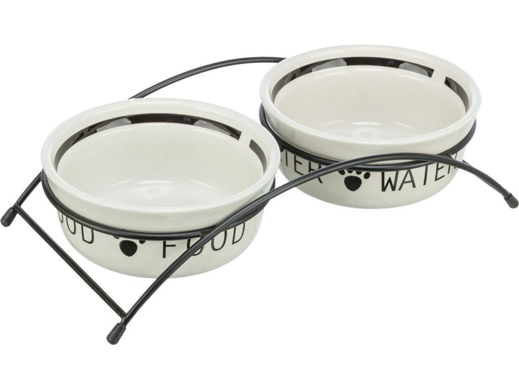 - materiál: keramika (misky), kov (stojan)