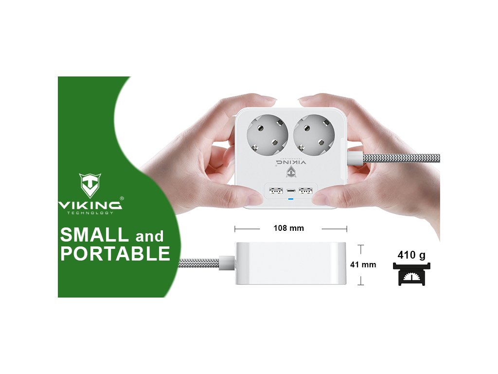 Díky kompaktním rozměrům je ideální nejen do domácnosti a kanceláře, ale například i na cesty. Nebudete už nikdy čekat ve frontě na volnou zásuvku. Navíc tento chytrý a výkonný rozbočovač můžete umístit na stěnu pomocí šroubků nebo pohodlně položit na stůl vedle počítače. Dlouhý napájecí kabel vám umožní zásuvku instalovat až 1.5 metru od zdroje elektřiny. Díky mnoha možnostem instalace se Viking AC23 hodí kamkoli!