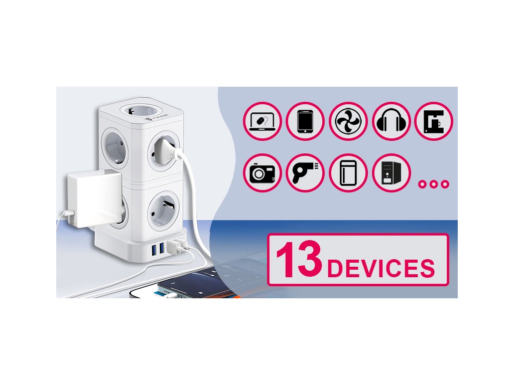 Počet výstupů: 13 (9 x AC230V + 3 x USB-A + 1 x USB-C)