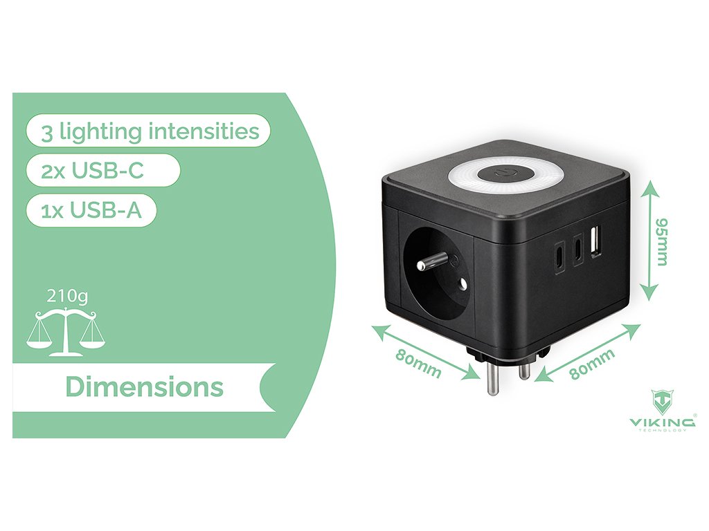 Síťový adaptér Viking Y23L přináší pohodlí a flexibilitu díky 2 AC výstupům a 3 USB portům, které umožňují nabíjení až 5 zařízení najednou. S kompaktními rozměry a dotykovým světlem s třemi nastavitelnými úrovněmi osvětlení je ideální volbou pro vaši domácnost nebo kancelář.