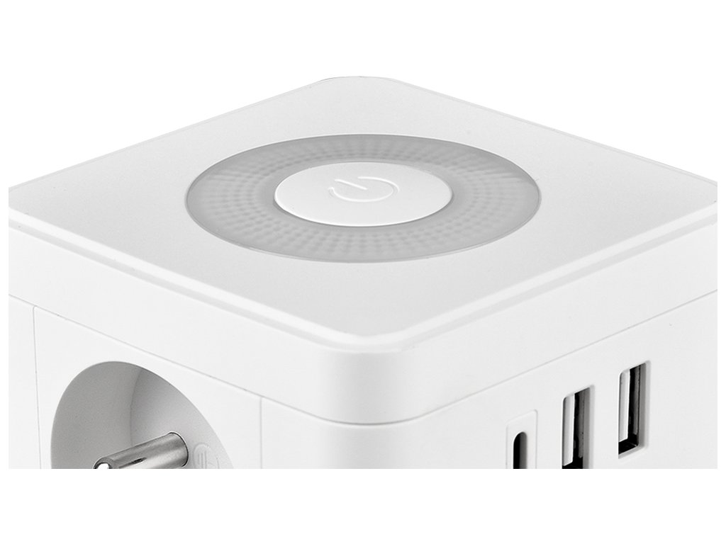 Síťový adaptér • rozbočovač • zásuvka • 2 x AC (230V/16A) výstup • 1 x USB-A (5V/3A, 9V/2A, 12V/1.5A) • 2 x USB-C (5V/3A, 9V/2.22A, 12V/1.67A) • 5V/3A pro USB-A + USB-C + USB-C • dotykové světlo se třemi intenzitami svícení • kompaktní rozměry a design • možnost nabíjení až 5 zařízení současně