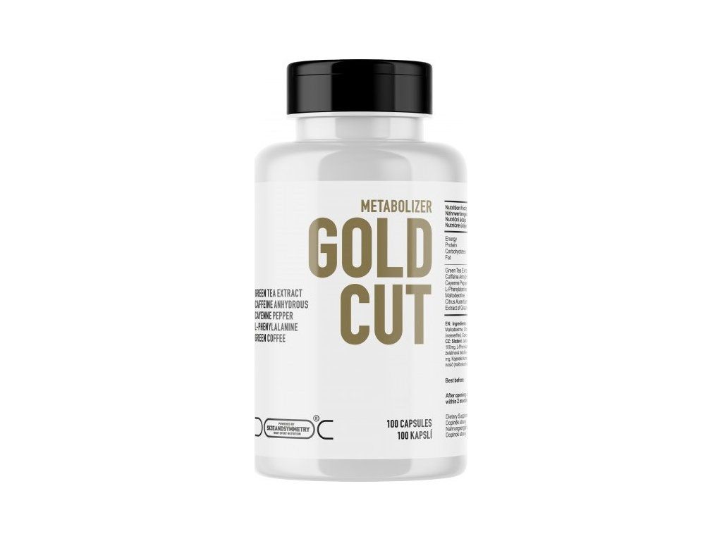 Gold Cut je extrémním spalovačem tuku s kombinací účinných látek pro podporu spalování tuku. Napomáhá využití tuku jako zdroje energie. Efektivně tak podporuje snižování množství tělesného tuku ve Vašem organismu a snížení tukových zásob. Obsahuje extrakt ze zeleného čaje, extrakt z hořkého pomeranče a černého pepře, který působí termogenně a podporuje využití tuku jako energetického zdroje. Kofein je jedním z nejúčinnějších stimulantů.