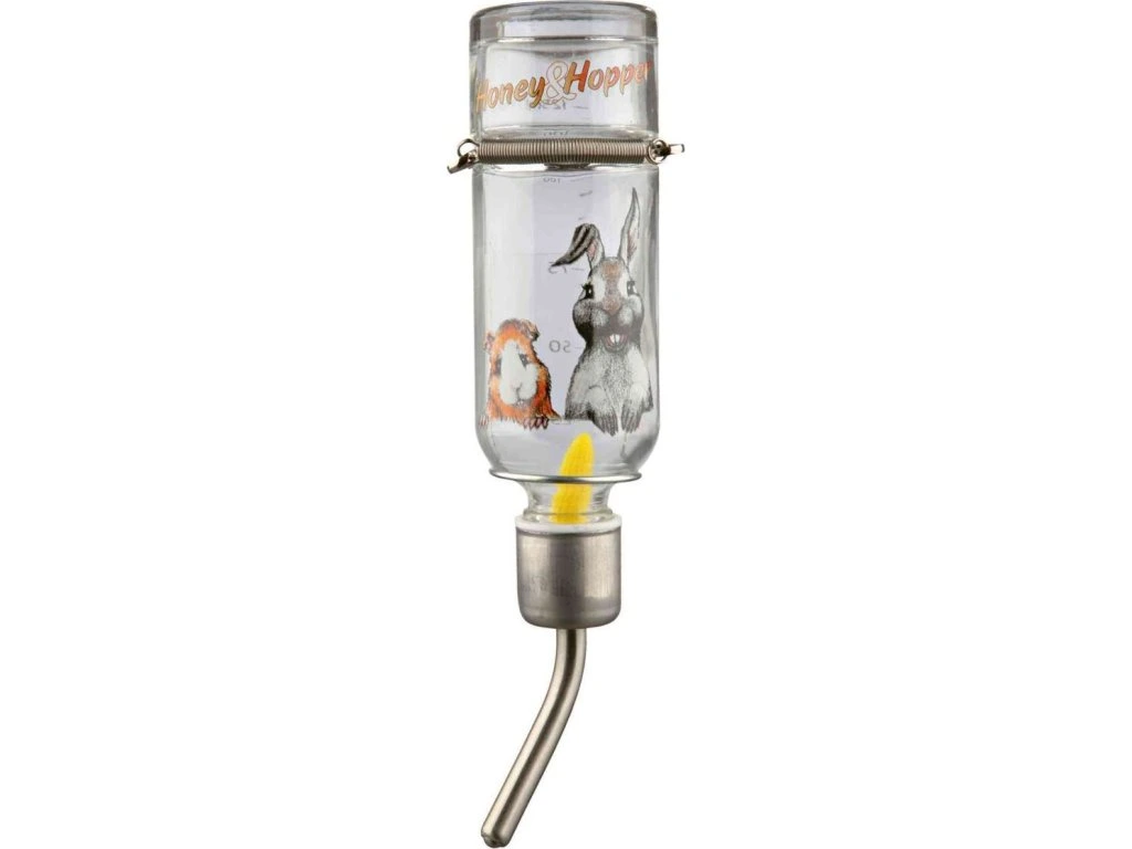 Skleněná napáječka Honey & Hopper s kovovým pítkem
