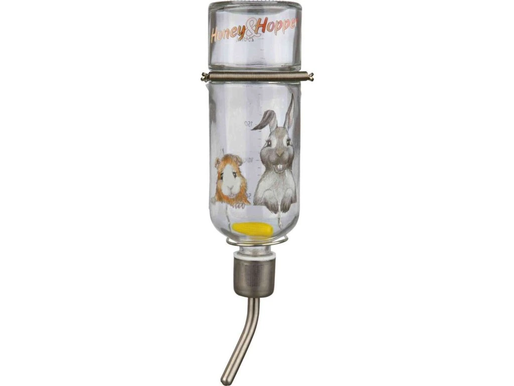 Skleněná napáječka Honey & Hopper s kovovým pítkem