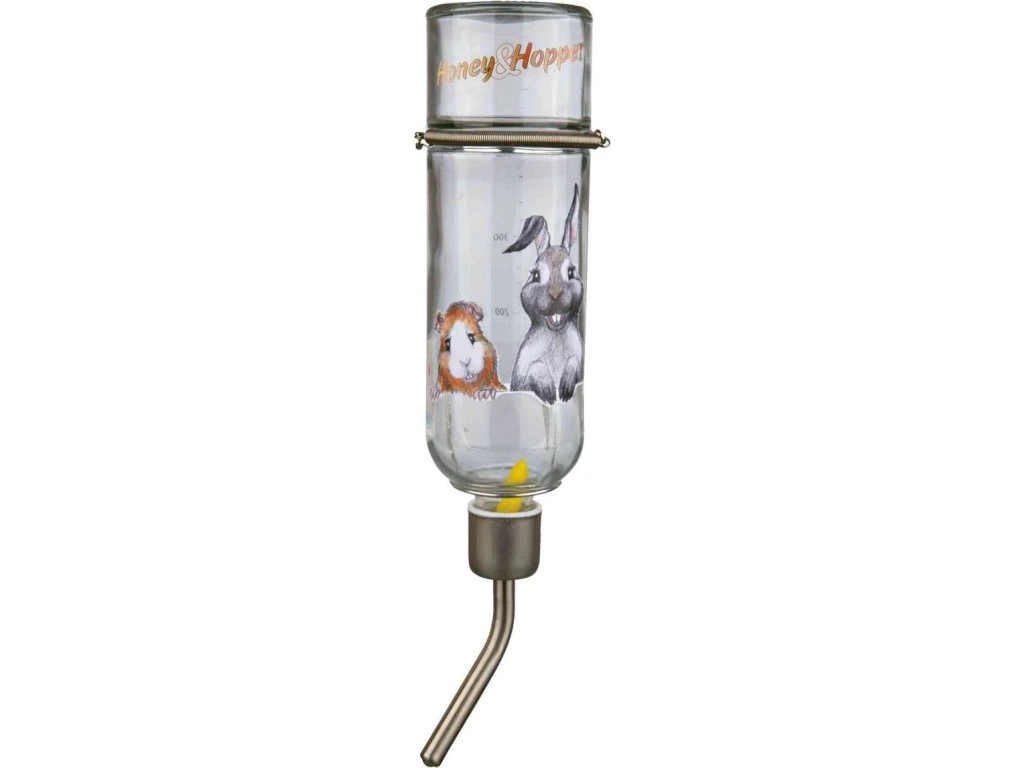 Skleněná napáječka Honey & Hopper s kovovým pítkem