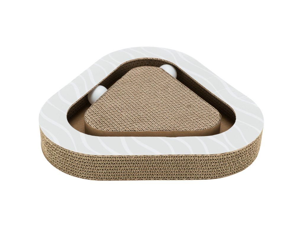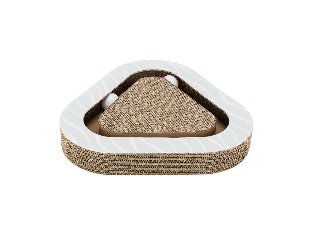 Škrabací karton triangl, s míčky a catnipem, 36 x 5 x 36/36 cm