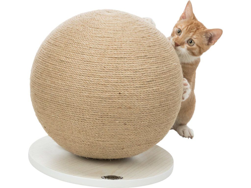 Škrábací koule na dřevěném podstavci , o 29 × 31 cm, juta