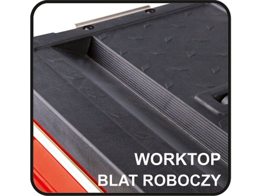 Modul má ploché víko, které lze použít jako pracovní desku. Kromě toho je modul vybaven pohodlnou, protiskluzovou rukojetí, postranními zvedacími rukojeťmi a plastovými rohy.