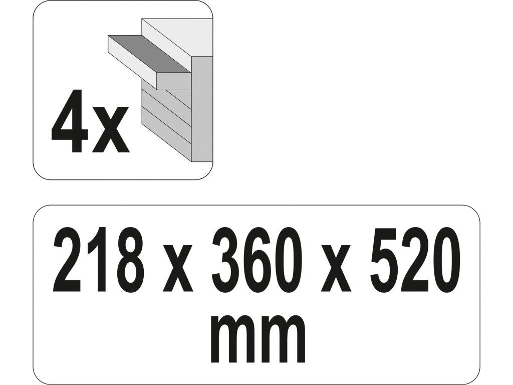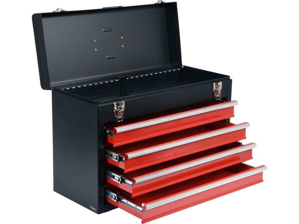 Celokovová skříňka na nářadí s vrchním úložným prostorem a 4x zásuvkami.