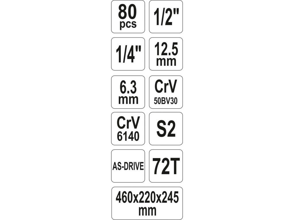 Skříňka s nářadím 1/2", 1/4" 80 ks