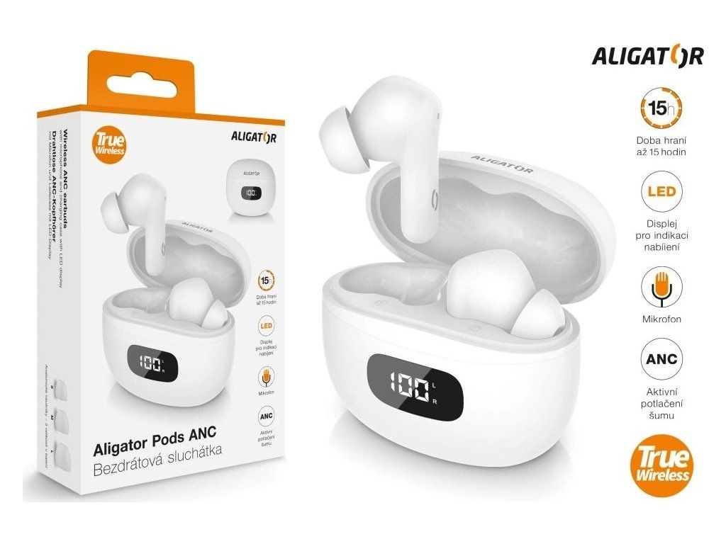 Sluchátka ALIGATOR PODS ANC TWS08, bílá