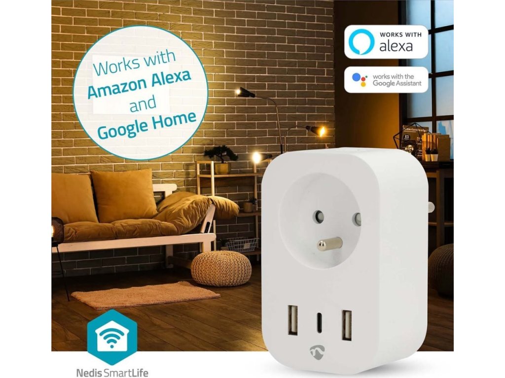 Tato pokročilá chytrá zásuvka kombinuje klasický síťový výstup s jedním USB-C a dvěma USB porty podporujícími Power Delivery 20 W a Quick Charge technologii. Umožňuje vzdálené ovládání jakéhokoliv připojeného spotřebiče prostřednictvím aplikace Nedis® SmartLife nebo hlasových příkazů přes Amazon Alexa, Google Home či Apple Siri.