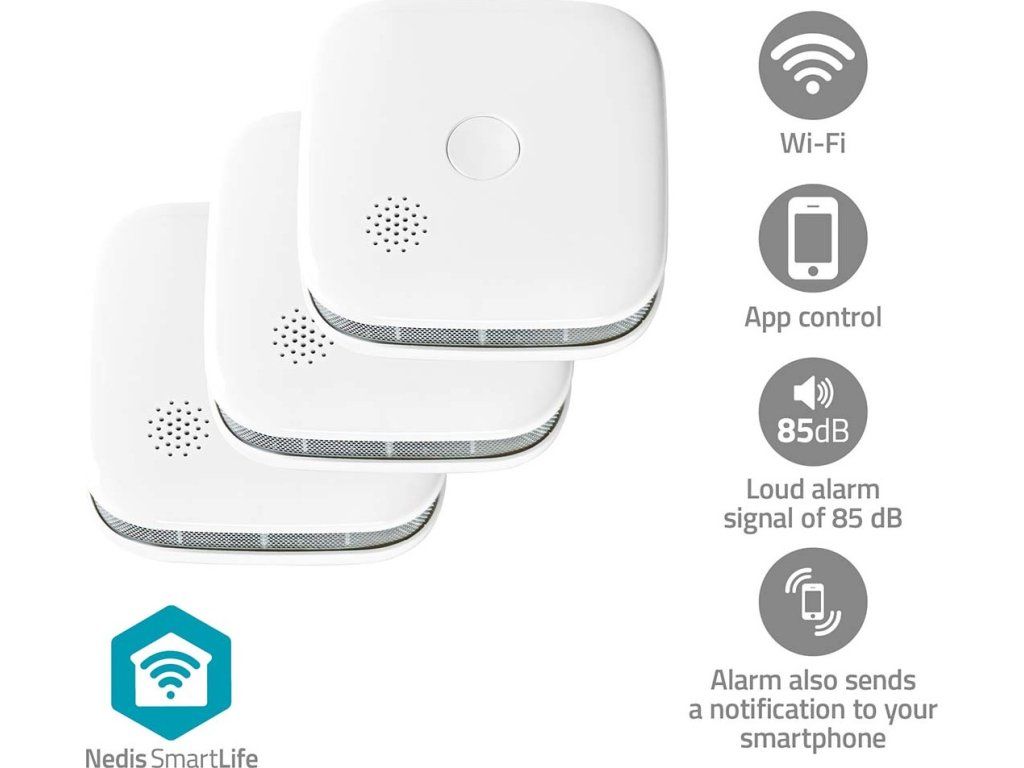 SmartLife Detektor Kouře | Wi-Fi | Napájení z baterie | Životnost snímače: 10 Rok | EN 14604 | Max. životnost baterie: 24 Měsíce | 85 dB | Bílá | 3 kusů