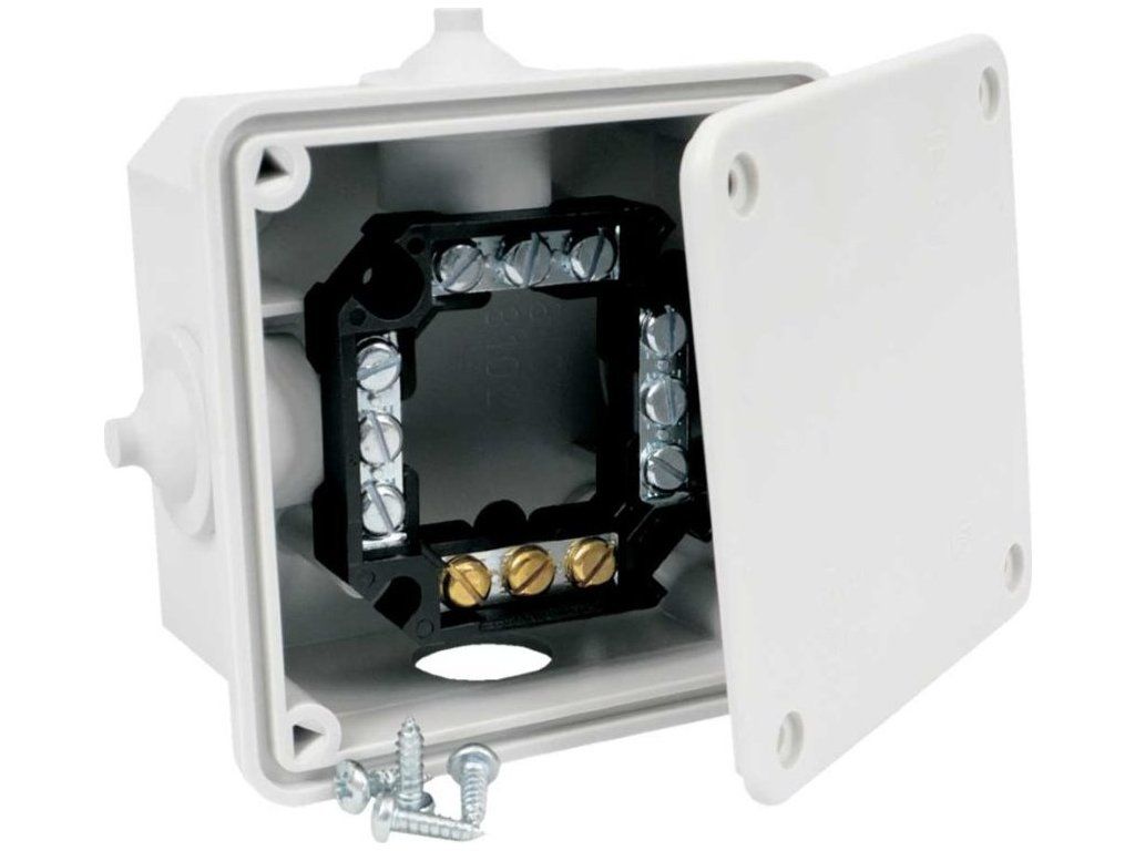 Součástí balení jsou průchodky, svorkovnice a šrouby pro připevnění víčka.