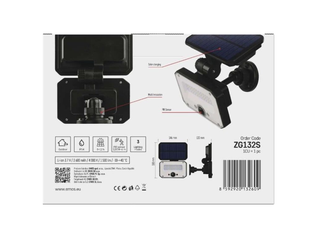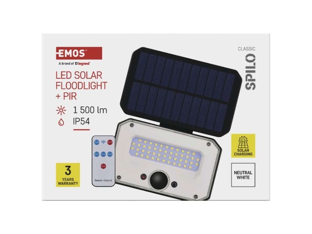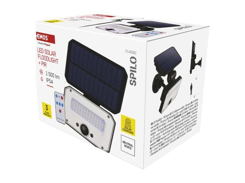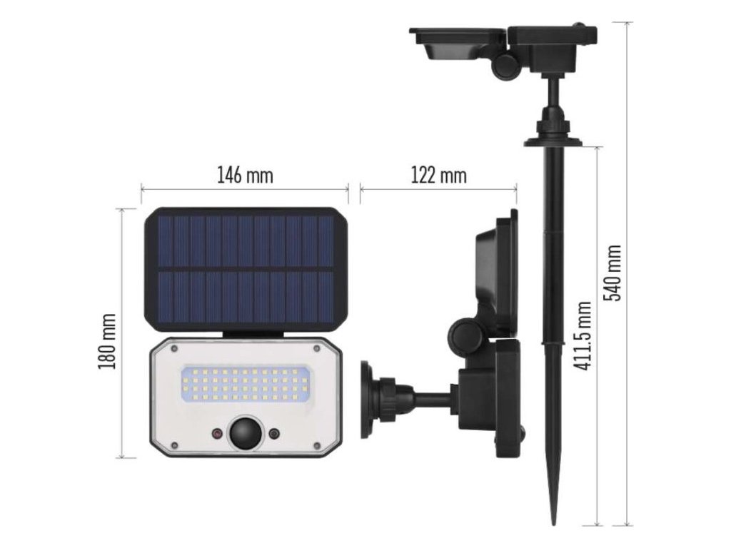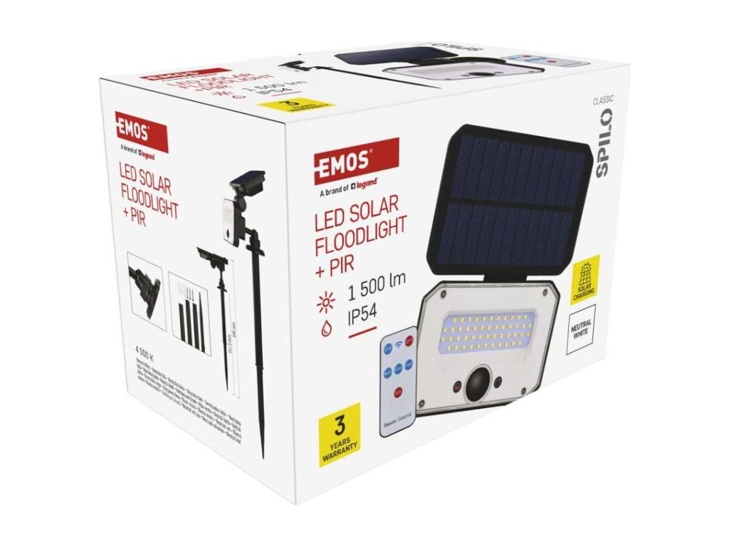 Solární LED reflektor SPILO s pohybovým čidlem, černý, neutrální bílá