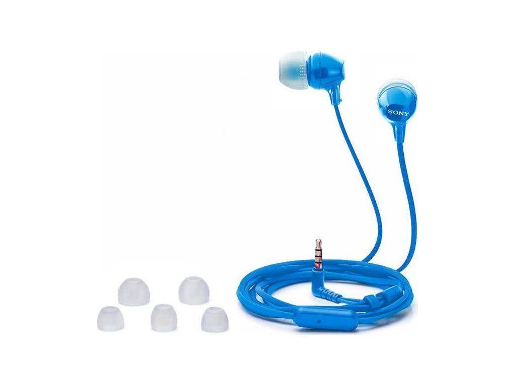 SONY headset do uší MDREX15APL/ sluchátka drátová + mikrofon/ 3,5mm jack/ citlivost 100 dB/mW/ modrá