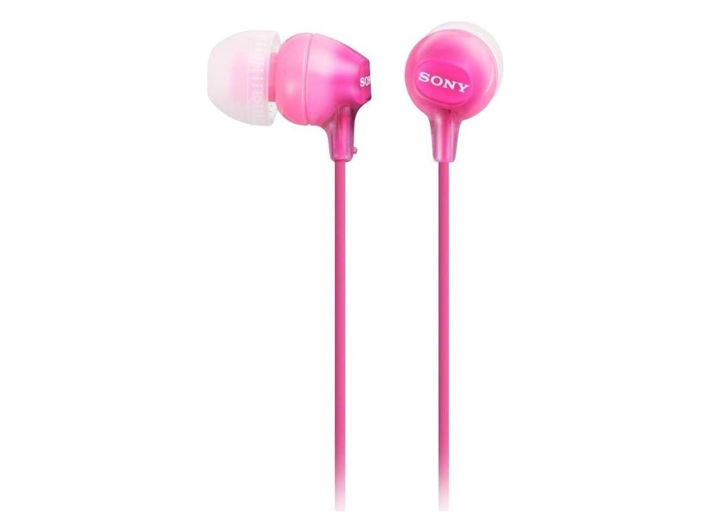 SONY headset do uší MDREX15APP/ sluchátka drátová + mikrofon/ 3,5mm jack/ citlivost 100 dB/mW/ růžová