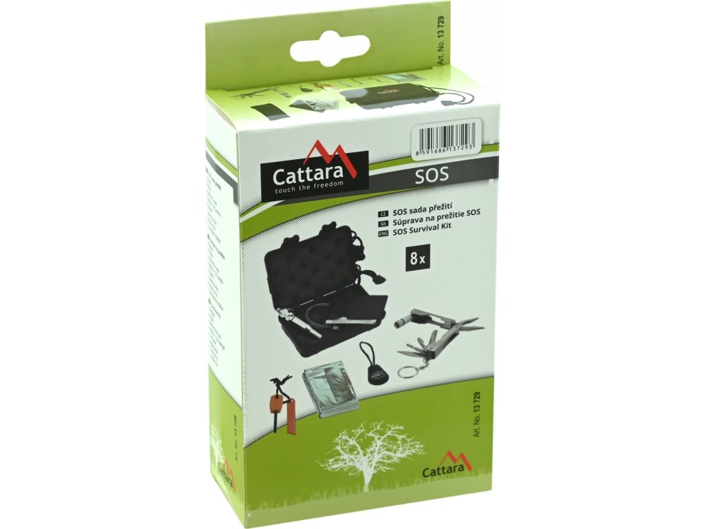 Krabička SOS sady má nízkou hmotnost 255 g a vnější rozměry 14x9x4 cm. Vnitřní prostor je opatřen pěnovou výplňí pro ochranu komponentů. Svými rozměry je sada vhodná pro nošení v menších kapsách, například u batohů Cattara ARMY. Lze ji uschovat i v sumkách, nebo v bočních kapsách u kapsáčových kalhot.