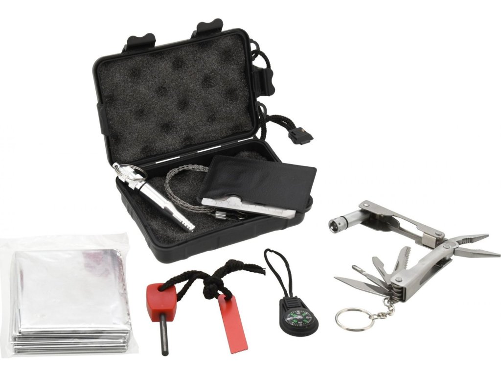 Ochranná krabička Kompas Píšťalka Multifunkční karta Multitool s LED svítilnou Křesadlo Bivakovací fólie Řezací strunaDoplňkové parametry