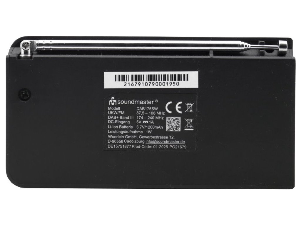 Přenosné rádio Soundmaster DAB175SW nabízí příjem digitálního DAB+ i analogového FM vysílání s RDS v elegantním kompaktním provedení. Díky vestavěné Li-Ion baterii můžete poslouchat své oblíbené stanice kdekoliv na cestách. Jasný 6,1cm barevný displej přehledně zobrazuje všechny potřebné informace.