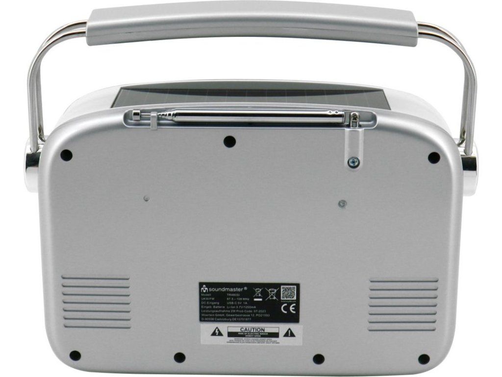 Kompaktní FM rádio Soundmaster TR480SI kombinuje retro design s moderními technologiemi. Disponuje zabudovaným solárním panelem, který se postará o napájení baterie a podpoří ekologický provoz. Rádio tak využijete na zahradě, chalupě, pikniku v přírodě, při kempování a všude tam, kde není dostupná elektřina ze sítě.