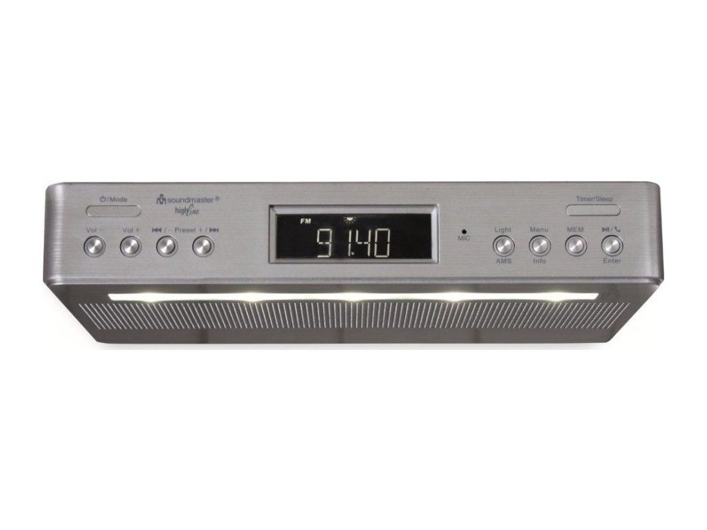 Zpříjemněte si pobyt v kuchyni oblíbenou hudbou díky rádiu Soundmaster UR2045SI. Disponuje klasickým FM-RDS a DAB+ přijímač pro poslech rádia v digitální kvalitě. Samozřejmostí je také bezdrátové přehrávání hudby díky technologii Bluetooth. Kuchyňské rádio Soundmaster UR2045SI svým designem podporuje montáž pod kuchyňskou linku. V přední části jsou umístěna tlačítka pro snadné ovládání přehrávání hudby i dalších praktických funkcí, jako je časovač nebo duální alarm. Na spodní straně se nachází rovněž LED světlo, které vám spolehlivě posvítí na pracovní lochu při přípravě pokrmů.