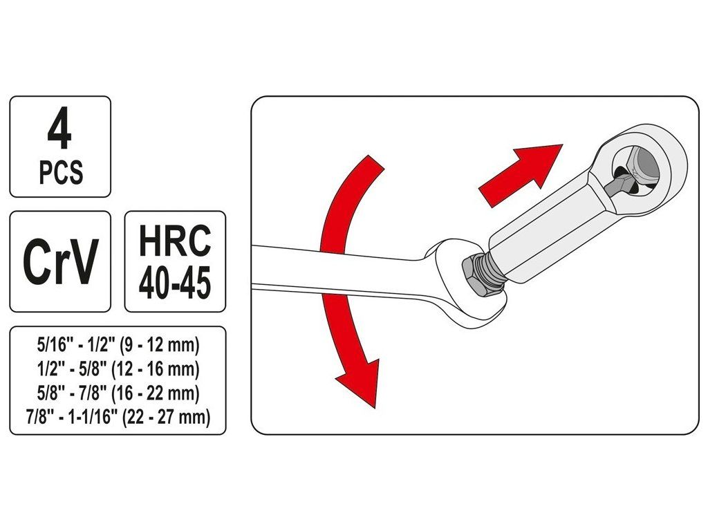 V soupravě jsou 4 odstupňované hlavice pro demontáž matic od 9 - 27 mm.