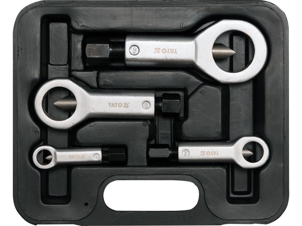 Sada přípravků pro demontáž poškozených a zrezlých matic.