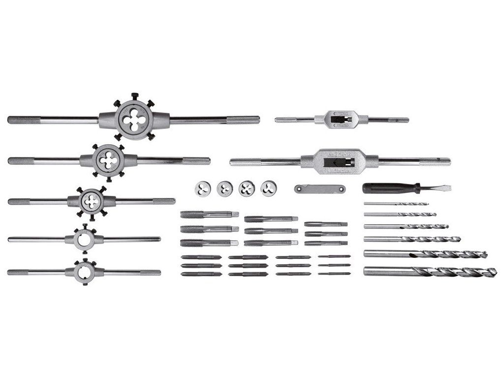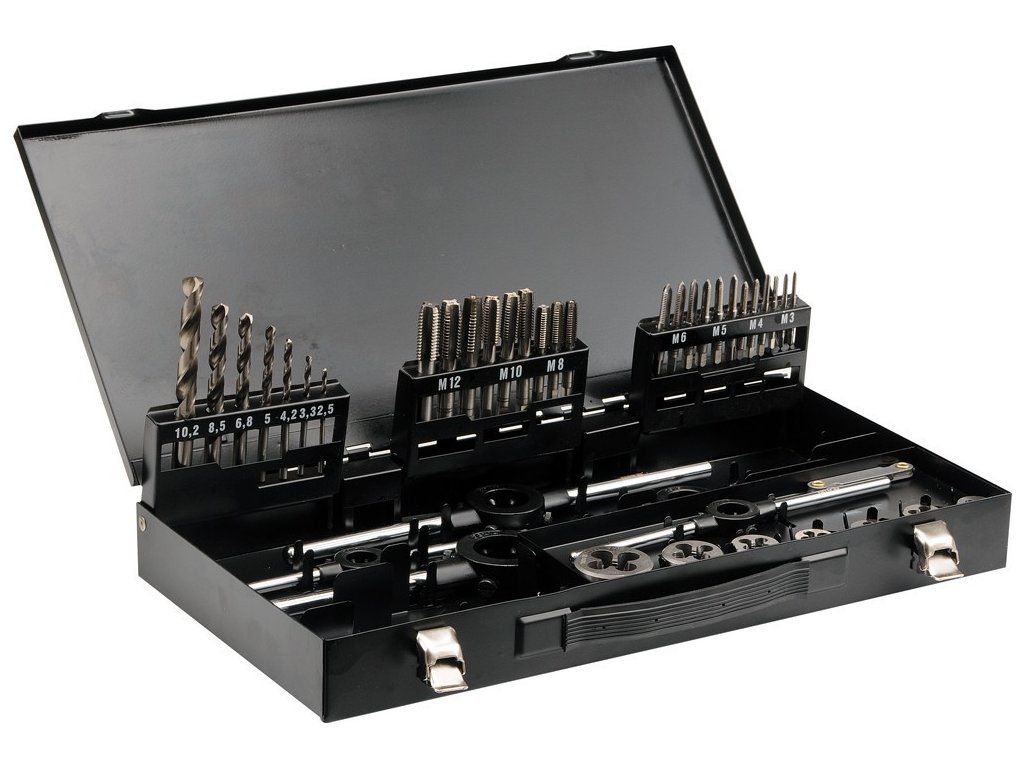 Obsah balení: Závitníky: M3; M4; M5; M6; M8; M10; M12 Vrtáky: 2,5; 3,3; 4,2; 5; 6,8; 8,5; 10,2 Vratidlo pro závitové čelisti: 2x Vratidlo pro zavitníky: 2x Závitové čelisti: M3; M4; M5; M6; M8; M10; M12Doplňkové parametry