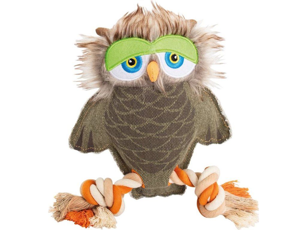 Sova na laně, 28 cm, robustní hračka pro psy, tkaná látka, HipHop Dog