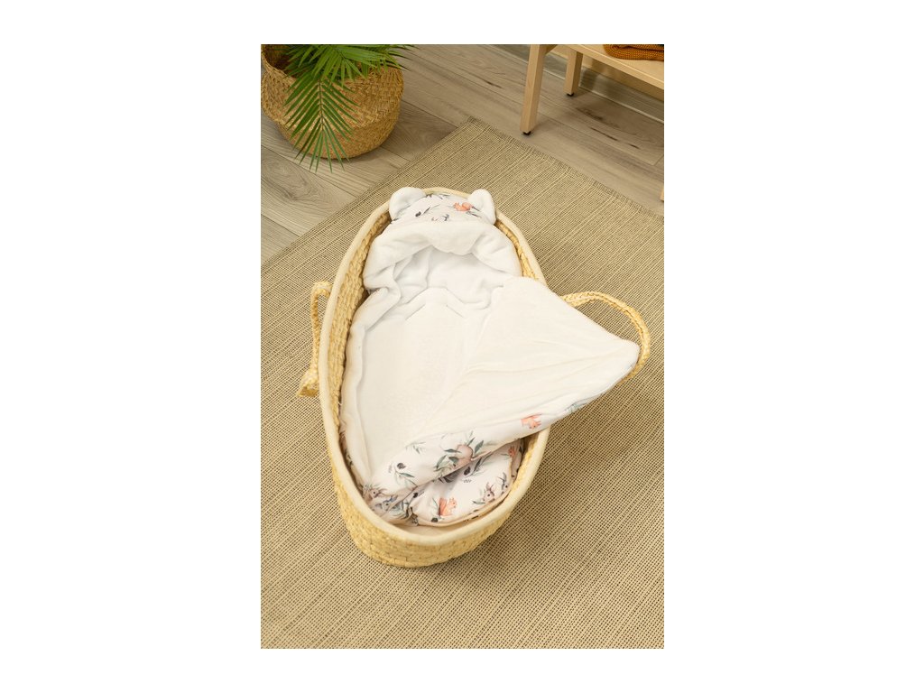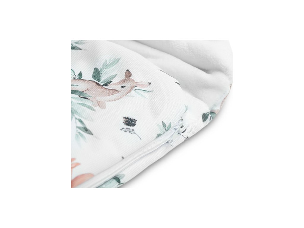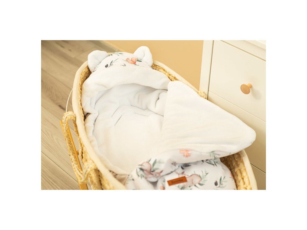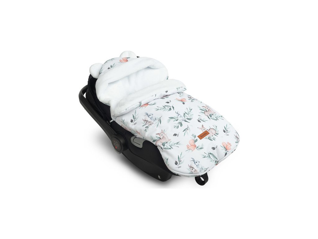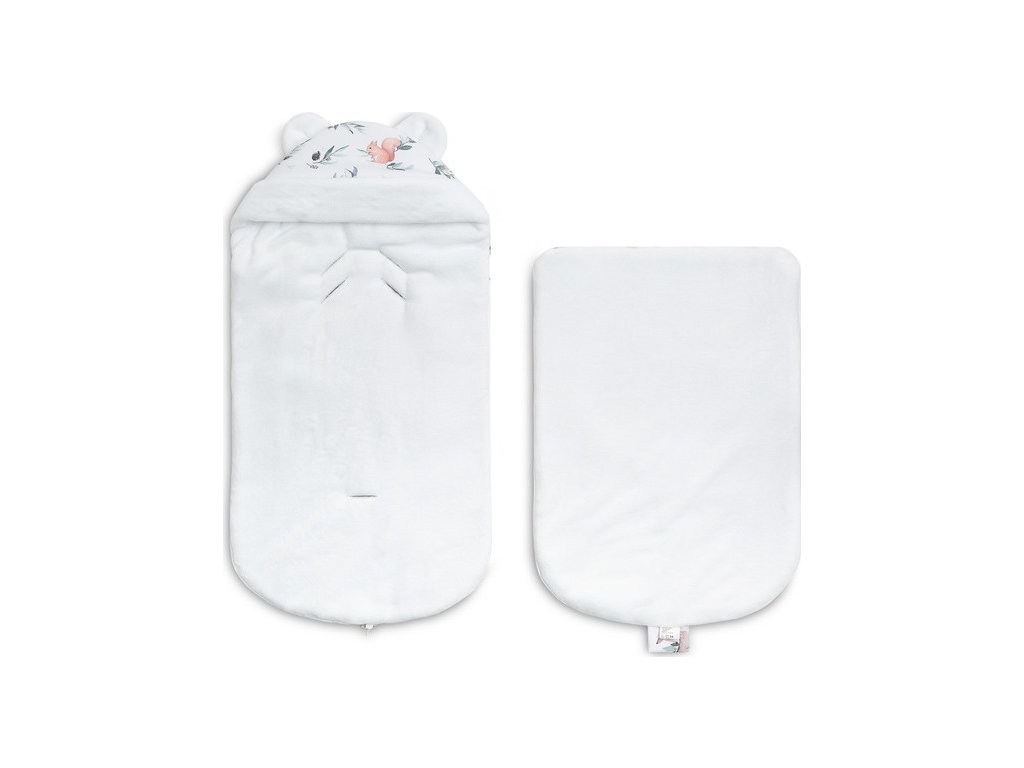 Spací pytel do autosedačky a kočárku byl vyroben s ohledem na nejmenší děti. Uši všité do kapuce a jemný vzor ji činí okouzlujícím. Vrchní vrstva je kvalitní voděodolná látka s krásným vzorem. Uvnitř je nadýchaná silikonová netkaná textilie, která chrání před chladem. Vnitřní vrstva je vyrobena z velmi jemného a příjemného plyše, který poskytuje dodatečné teplo. Má dva zipy, které umožňují odepnout spacák z levé nebo pravé strany a také zcela rozepnout přední část. Spací pytel má otvory pro 3-bodové bezpečnostní pásy. Dá se s úspěchem použít v nosítkách, gondolách a dokonce i sáňkách. Je věnována dětem ve věku 0-18 měsíců.