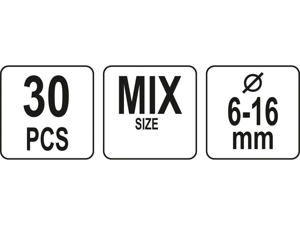 7 ks 6-8 mm 7 ks 7-9 mm 5 ks 8-10 mm 5 ks 9-11 mm 3 ks 10-12 mm 3 ks 14-16 mmDoplňkové parametry