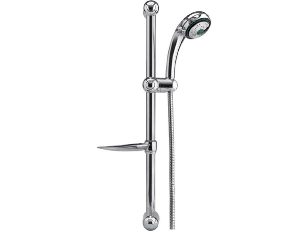 Sprchový set obsahuje tyč z nerezové oceli, určenou k připevnění na stěnu. Na samotné tyči se nachází pohyblivý držák sprchy, sprchu tak můžete výškově nastavit dle libosti. Součástí tyče je i držák na mýdlo.