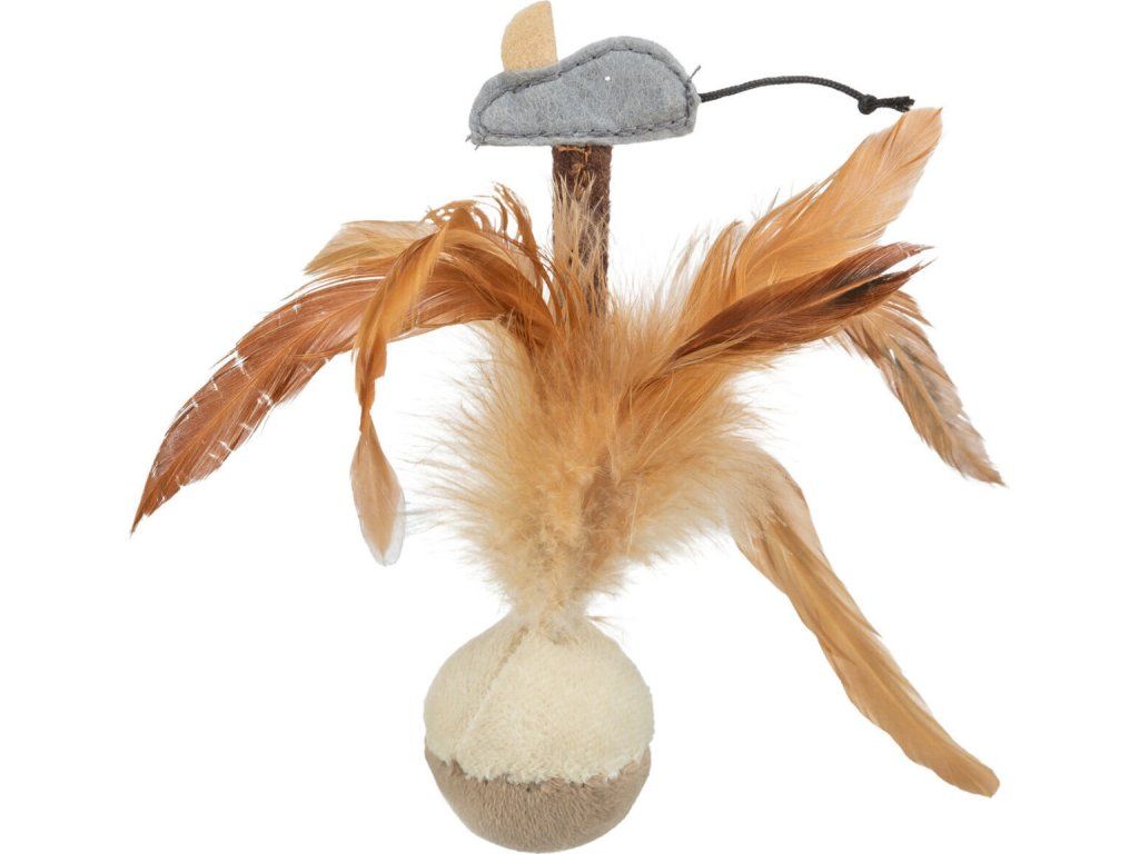 Squieky míček s peřím a myškou 15 cm