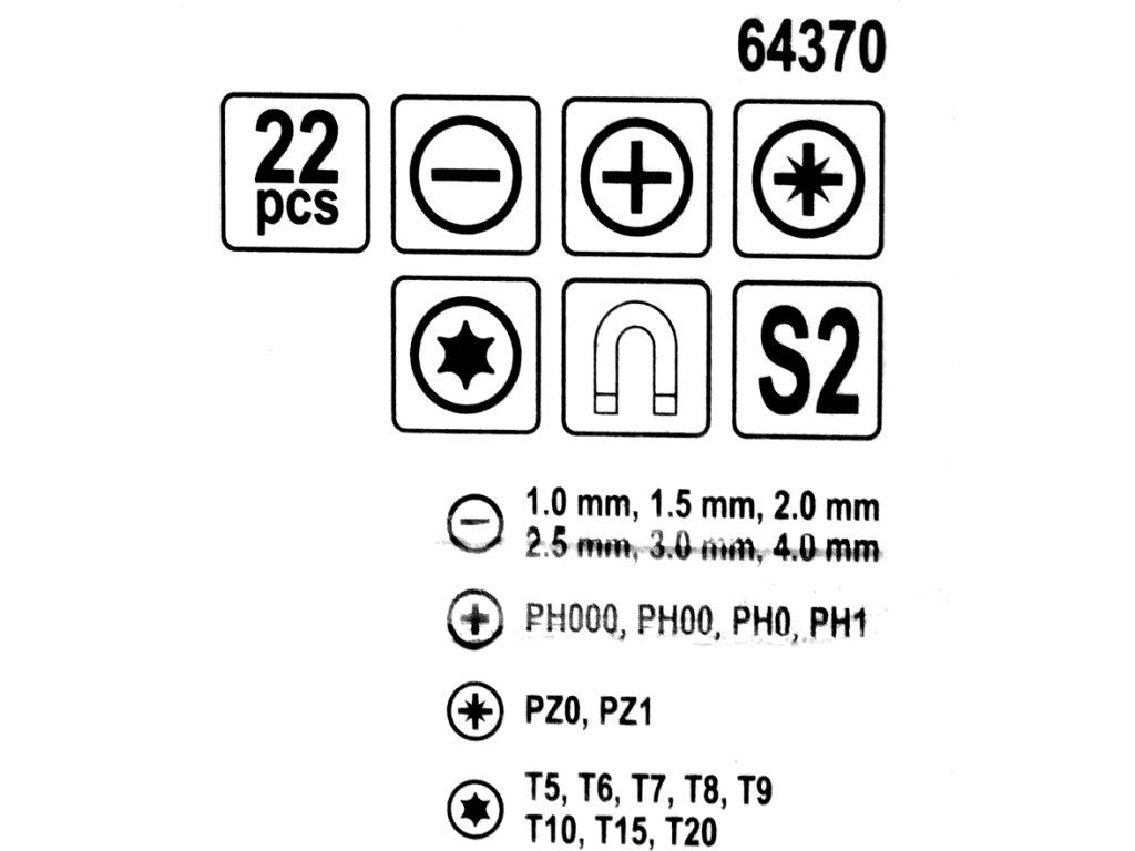 - bit TORX T5;T6;T7;T8;T9;T10;T15;T20