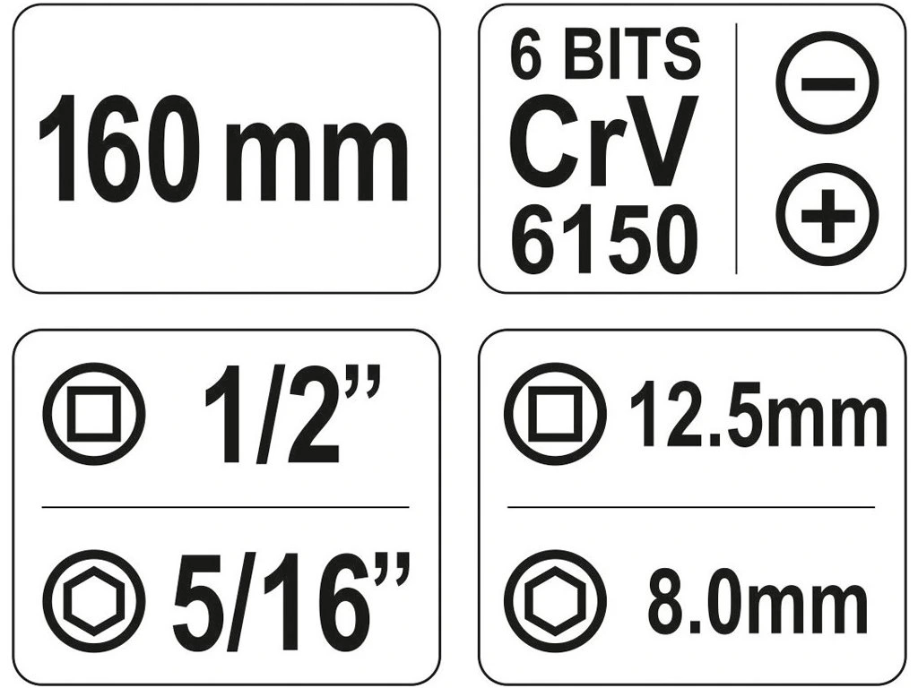 Úderový rázový šroubovák je vhodný pro bezpečné utažení připevňovacích šroubů a pro uvolnění zadřených, zatvrdlých a zarezlých šroubů a matic. Adaptér 1/2" pro 5/16" bity lze vyjmout a šroubovák použít s hlavicemi 1/2". Při úderu kladiva se síla převede vnitřním mechanizmem na krouticí moment.