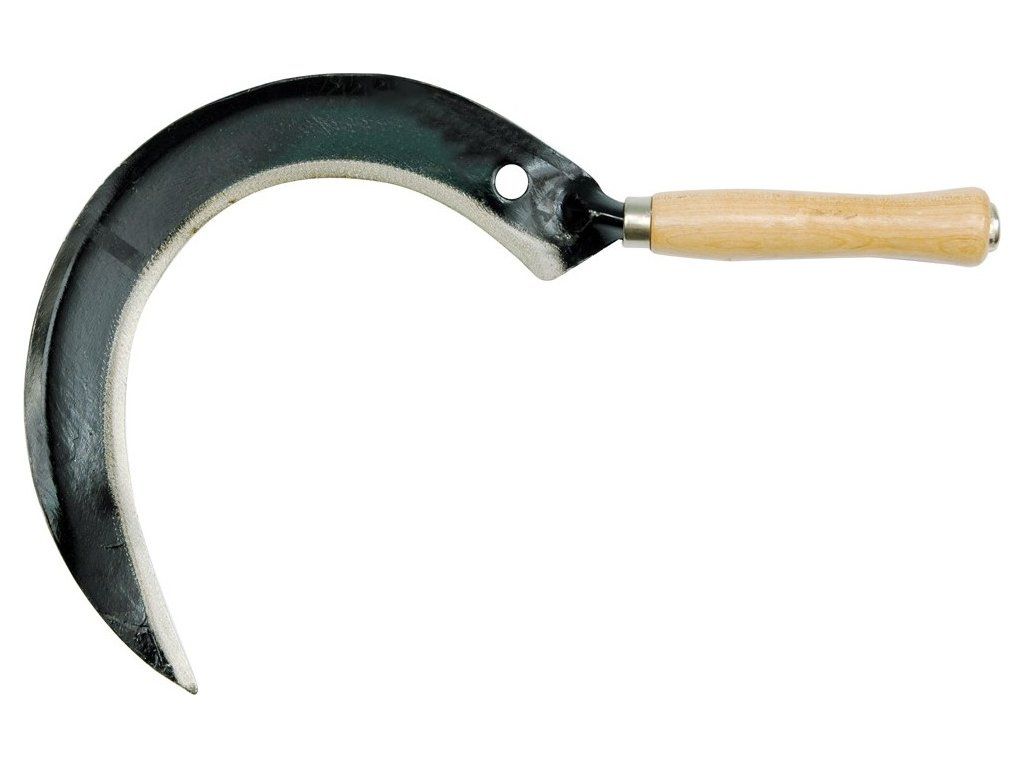 Hladký srpek na rukojeti ze dřeva. Používá se pro stříhání rostlin a malých větví.