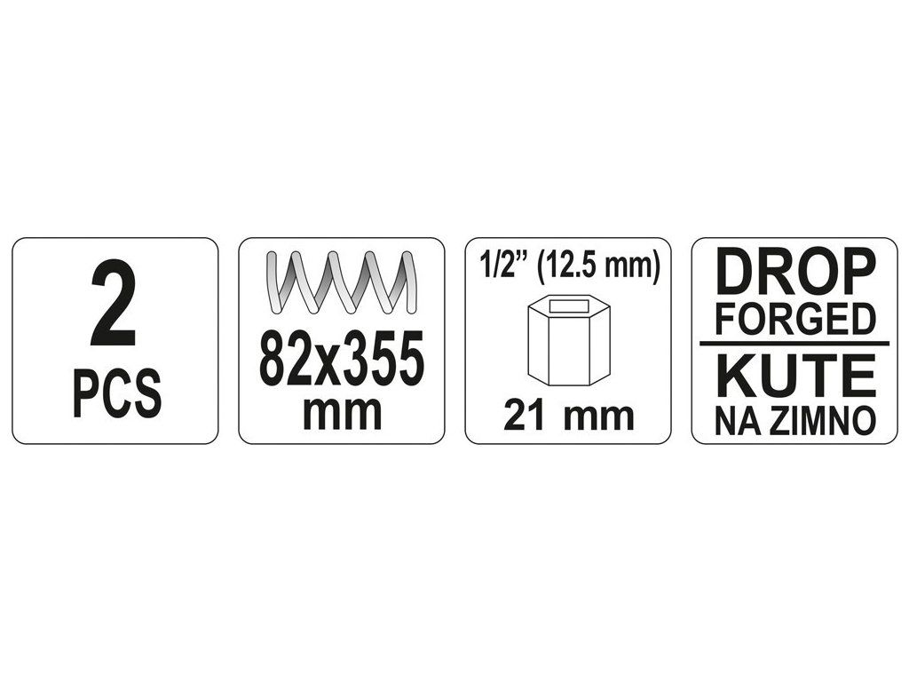 Délka stahováku 355 mm a šířka 82 mm a 1/2" / 21 mm zakončení zajistí snadnou demontáž běžných vinutých pružin automobilů.