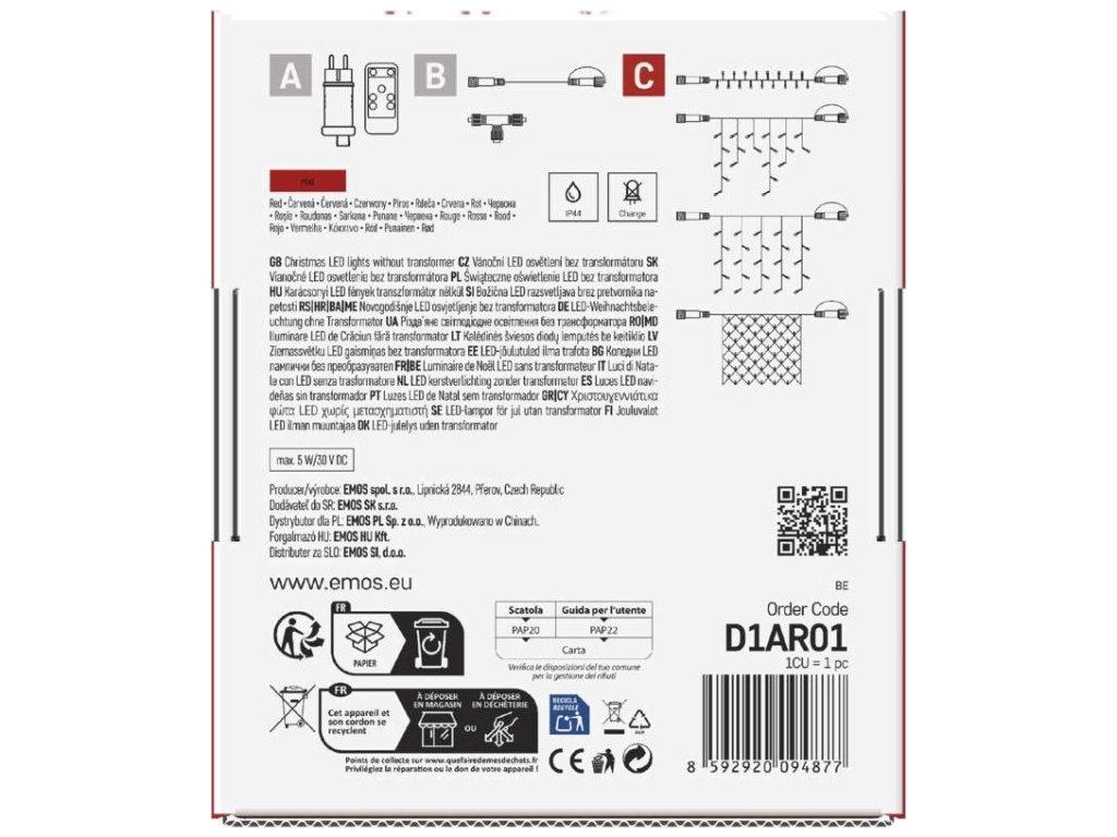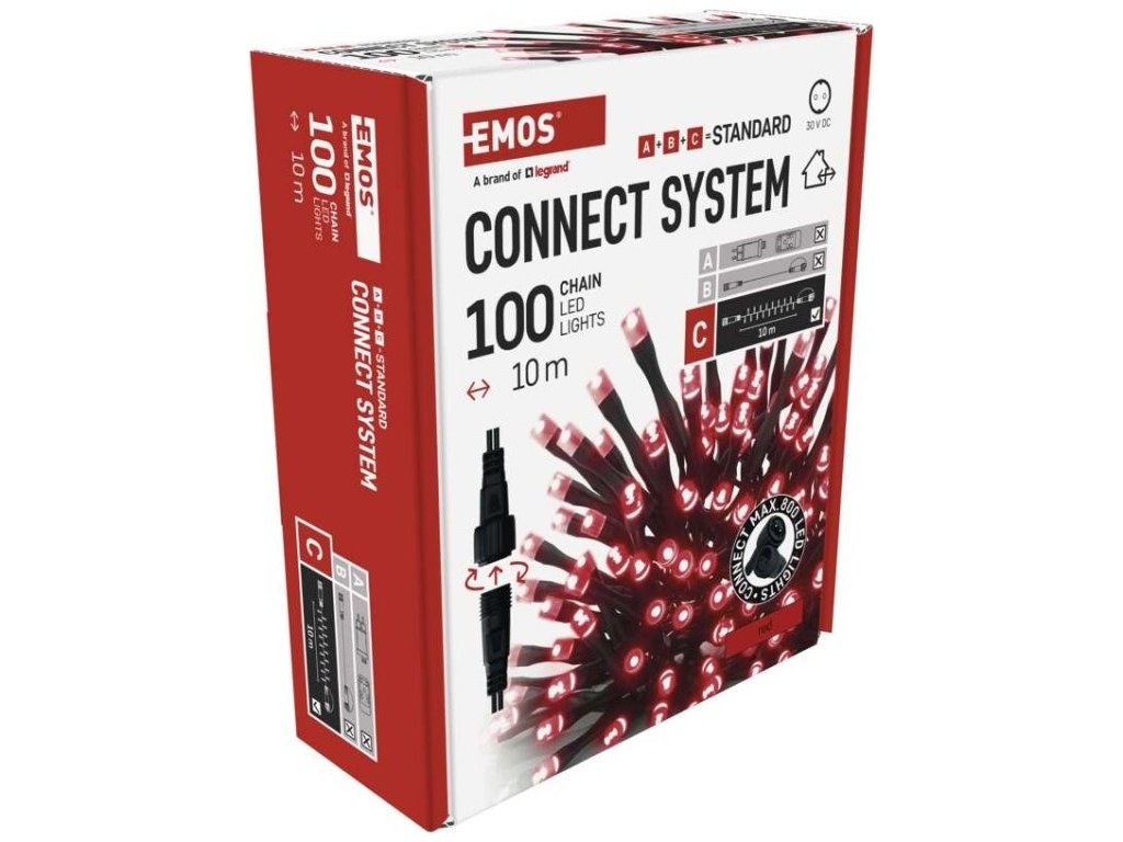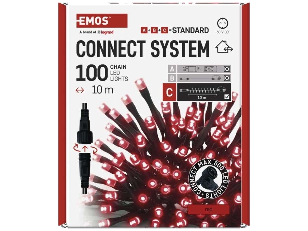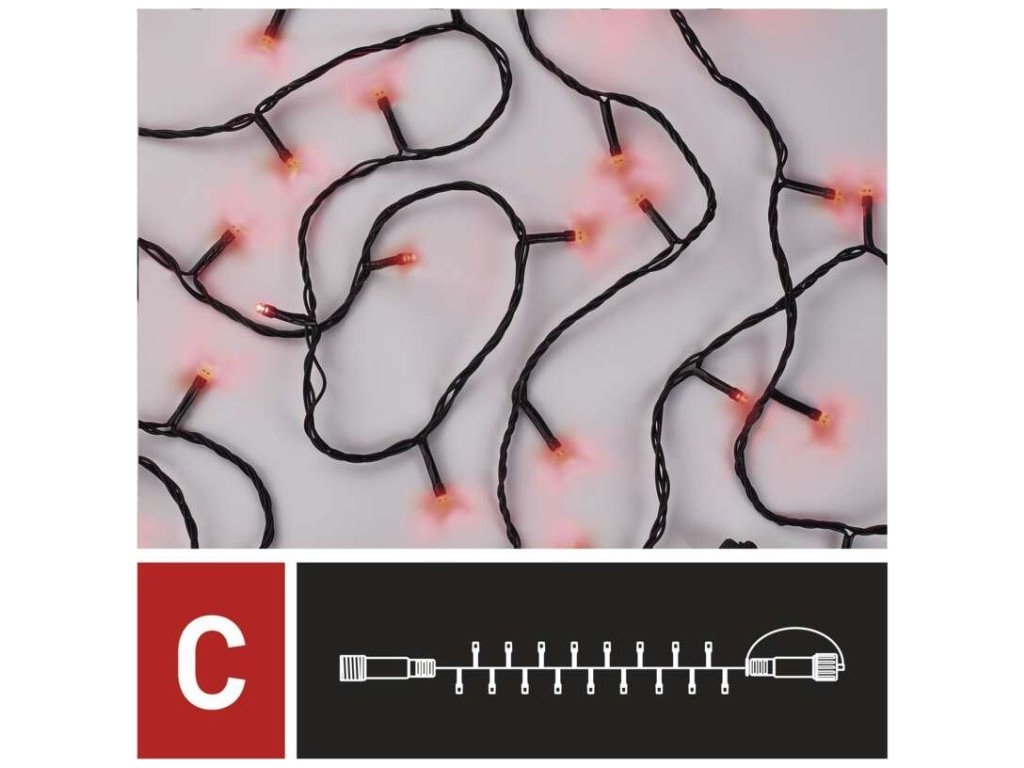 Standard LED spojovací vánoční řetěz, 10 m, venkovní i vnitřní, červená