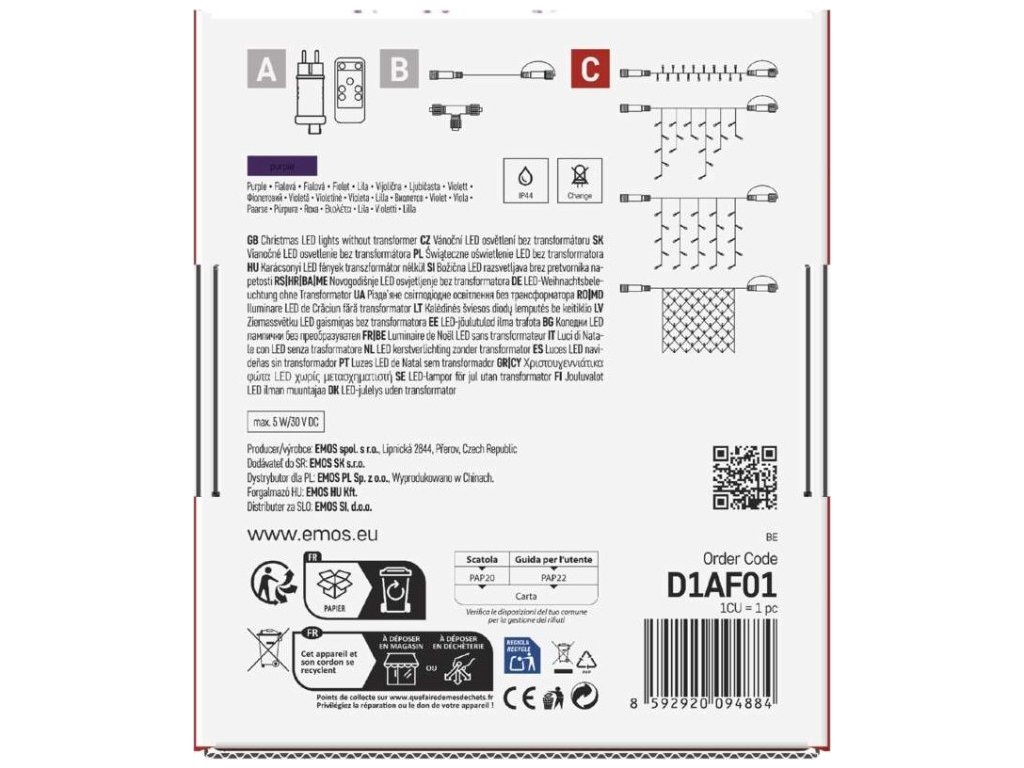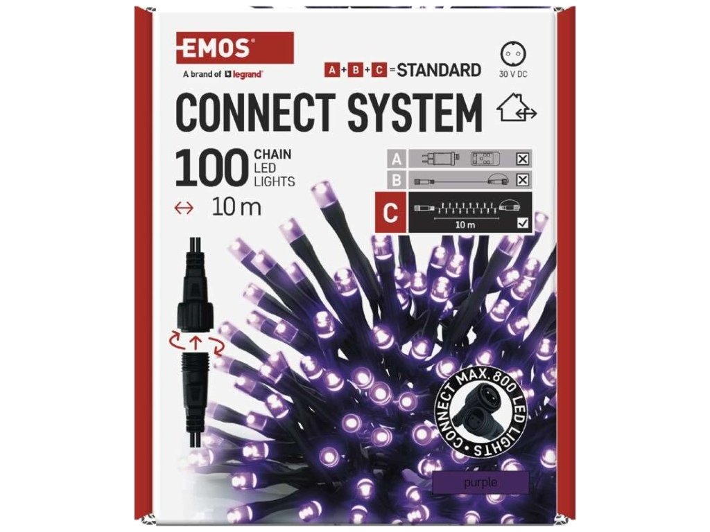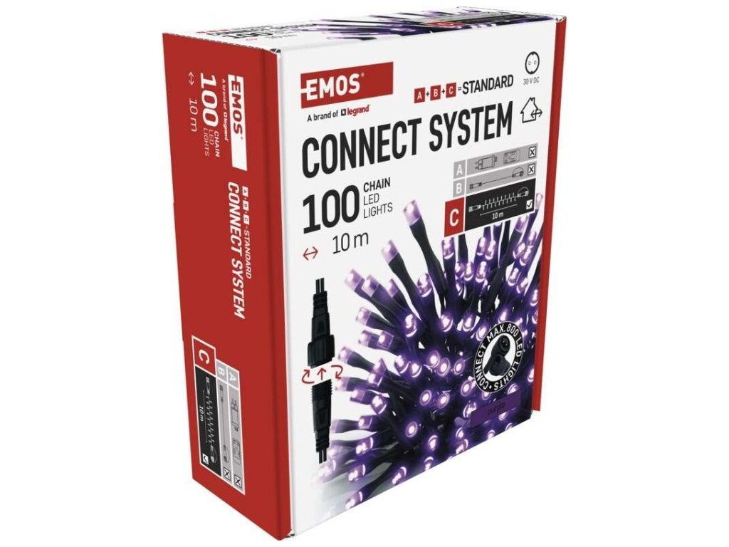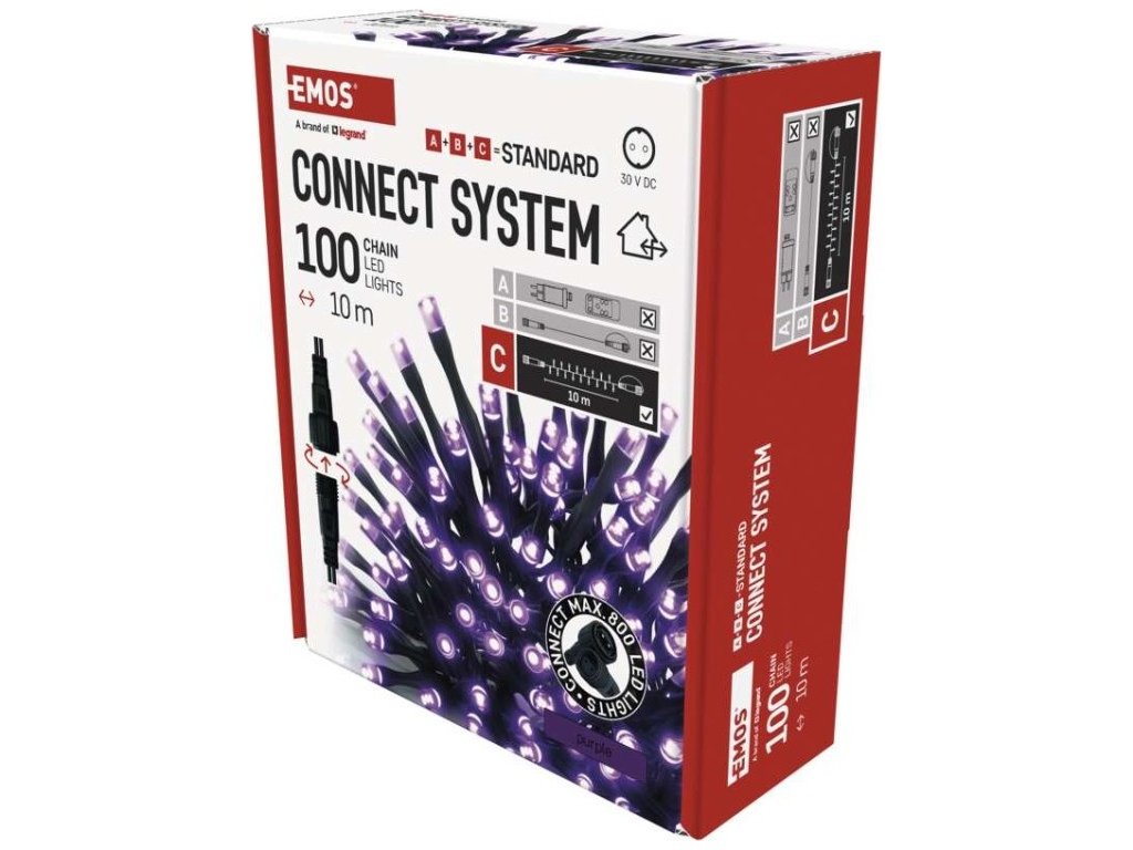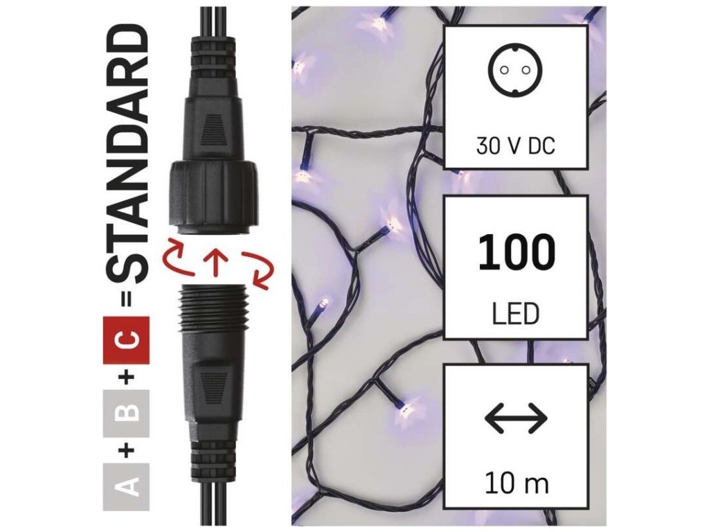 Standard LED spojovací vánoční řetěz, 10 m, venkovní i vnitřní, fialová