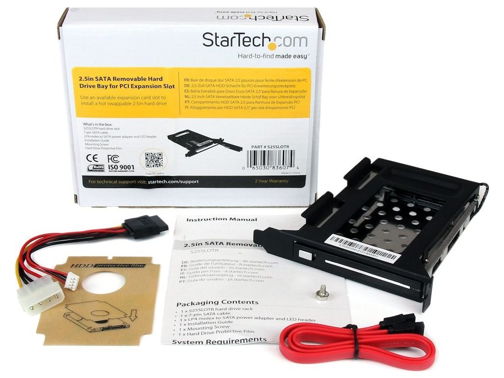Trayless rack se instaluje do standardního (full profile) PCI slotu a umožňuje přístup k 2,5" SATA pevnému disku nebo SSD disku ze zadního panelu počítačové skříně. Na rozdíl od běžných externích boxů nevyžaduje tento rack montáž disku do speciálního rámu, čímž šetří čas a usnadňuje manipulaci s diskem.