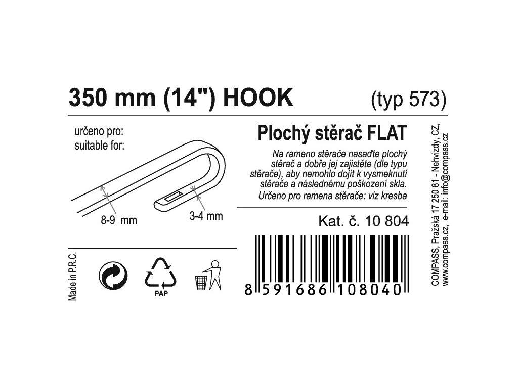 Stěrač FLAT BULK (HOOK) 14"/350mm