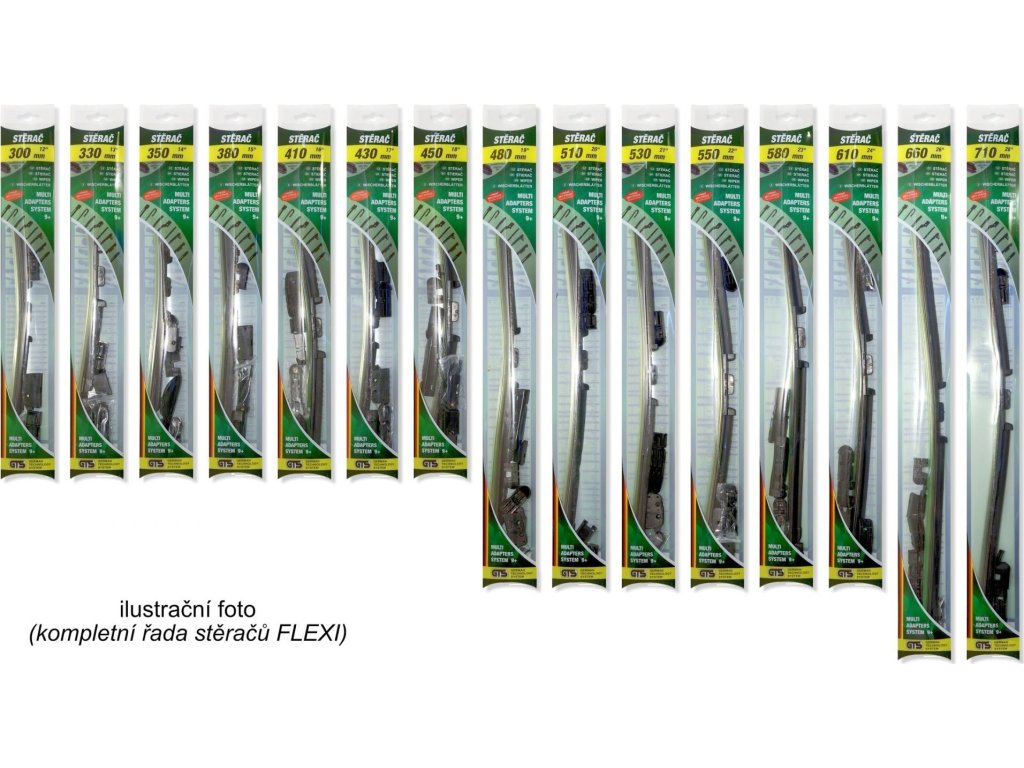 Plochý stěrač FLAT FLEXI, baleno á 1 ks v průhledném plastovém obalu. Obsahuje celou řadu adaptérů, díky kterým je snadné stěrač upevnit na většinu běžně používaných zakončení ramének stěračů. Stěrač je vybaven grafitovým břitem pro výtečné stírání.