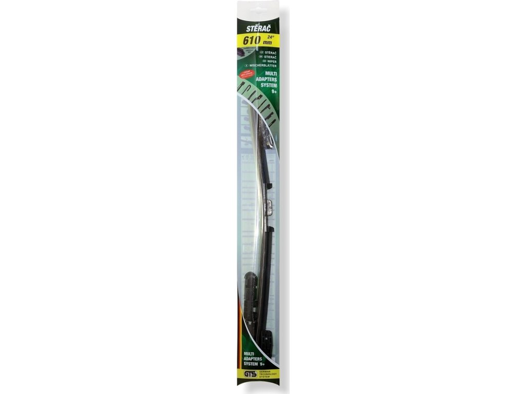 Plochý stěrač FLAT FLEXI, baleno á 1 ks v průhledném plastovém obalu. Obsahuje celou řadu adaptérů, díky kterým je snadné stěrač upevnit na většinu běžně používaných zakončení ramének stěračů. Stěrač je vybaven grafitovým břitem pro výtečné stírání.