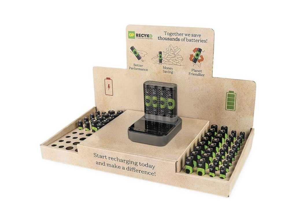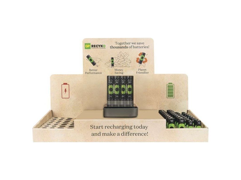 Stojan GP ReCyko Standard / 1×nabíječka GP + dock / 16×AA + 16×AAA / 1×USB-A adaptér