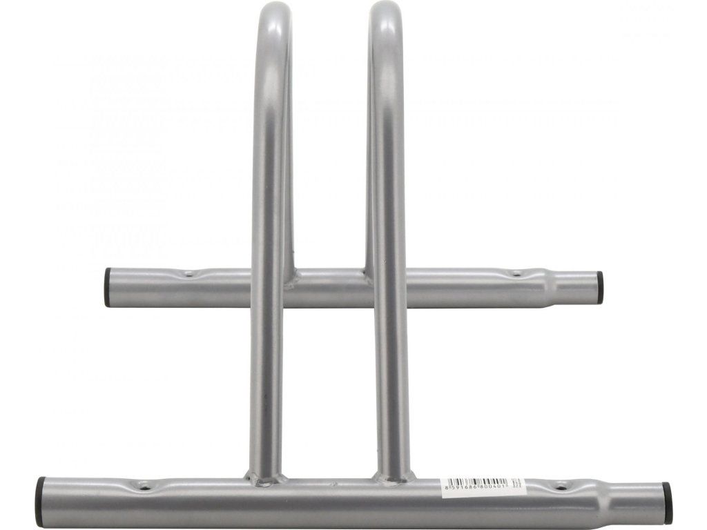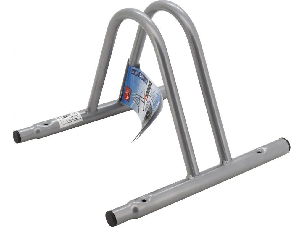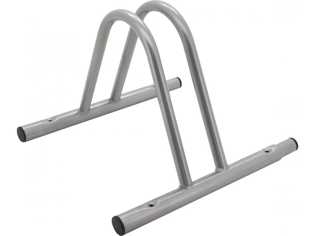 Celokovová konstrukce s šedostříbrným povrchem je opatřena trubkami o průměru 20 mm (vrchní část) a 30 mm (základnová část) zajišťuje bezpečné umístění kol.
