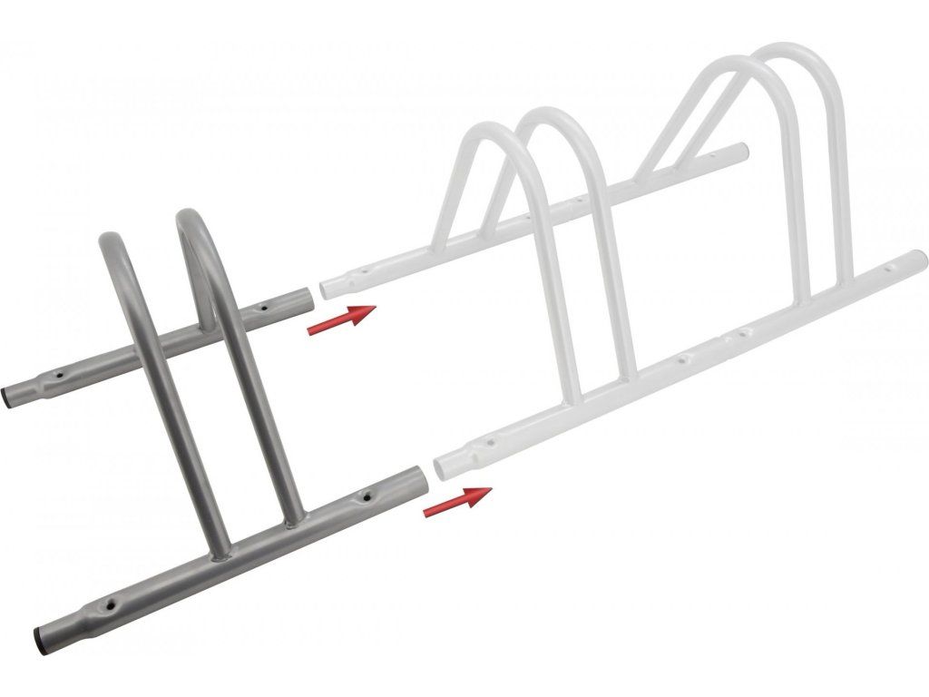 Díky zúženému zakončení je možné spojovat více stojanů dohromady pouhým vsunutím, tím je umožněno rozšířit použití i pro více kol.
